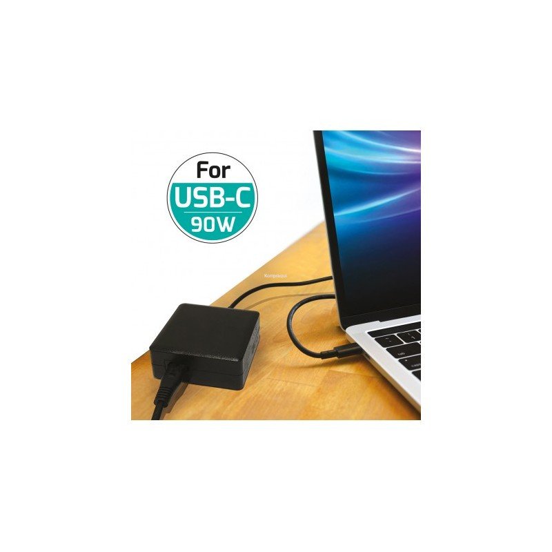 O Carregador Universal Port Design Type C 90W é compatível com notebooks tipo C, MacBooks, tablets e smartphones. Ele possui seleção automática de tensão, podendo fornecer 5V-3A, 9V-3A, 12V-3A, 15V-3A ou até 20V-4,35A, com uma potência máxima de 90W.