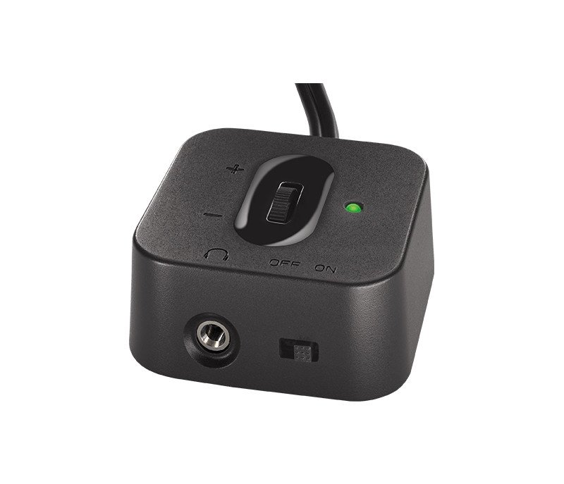 Desfrute de áudio de alta qualidade em todo o seu local de trabalho. Este sistema de alto-falante 2.1 combina perfeitamente com locais pequenos. Os alto-falantes ocupam um espaço mínimo na sua mesa, e o subwoofer cabe perfeitamente debaixo da mesa.
